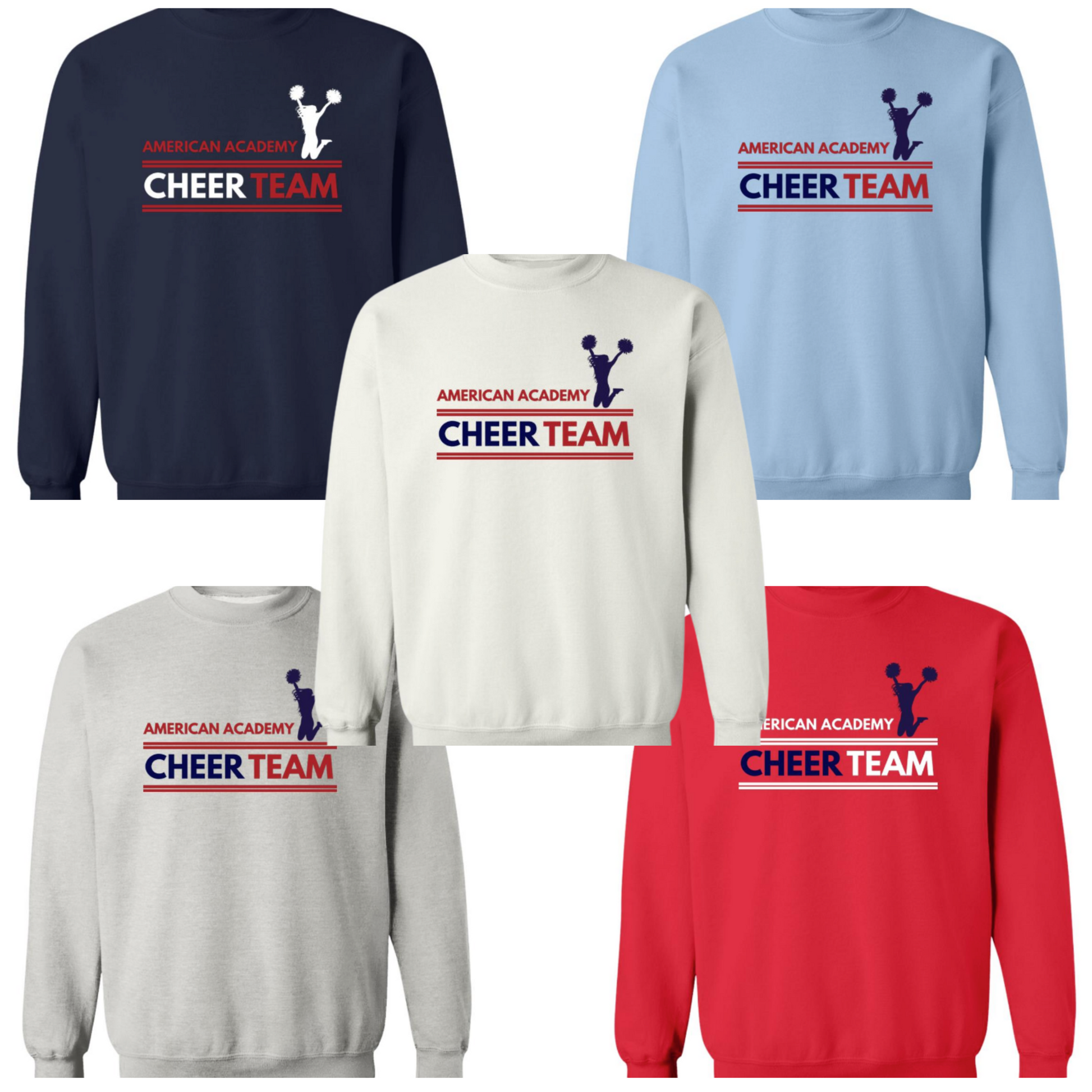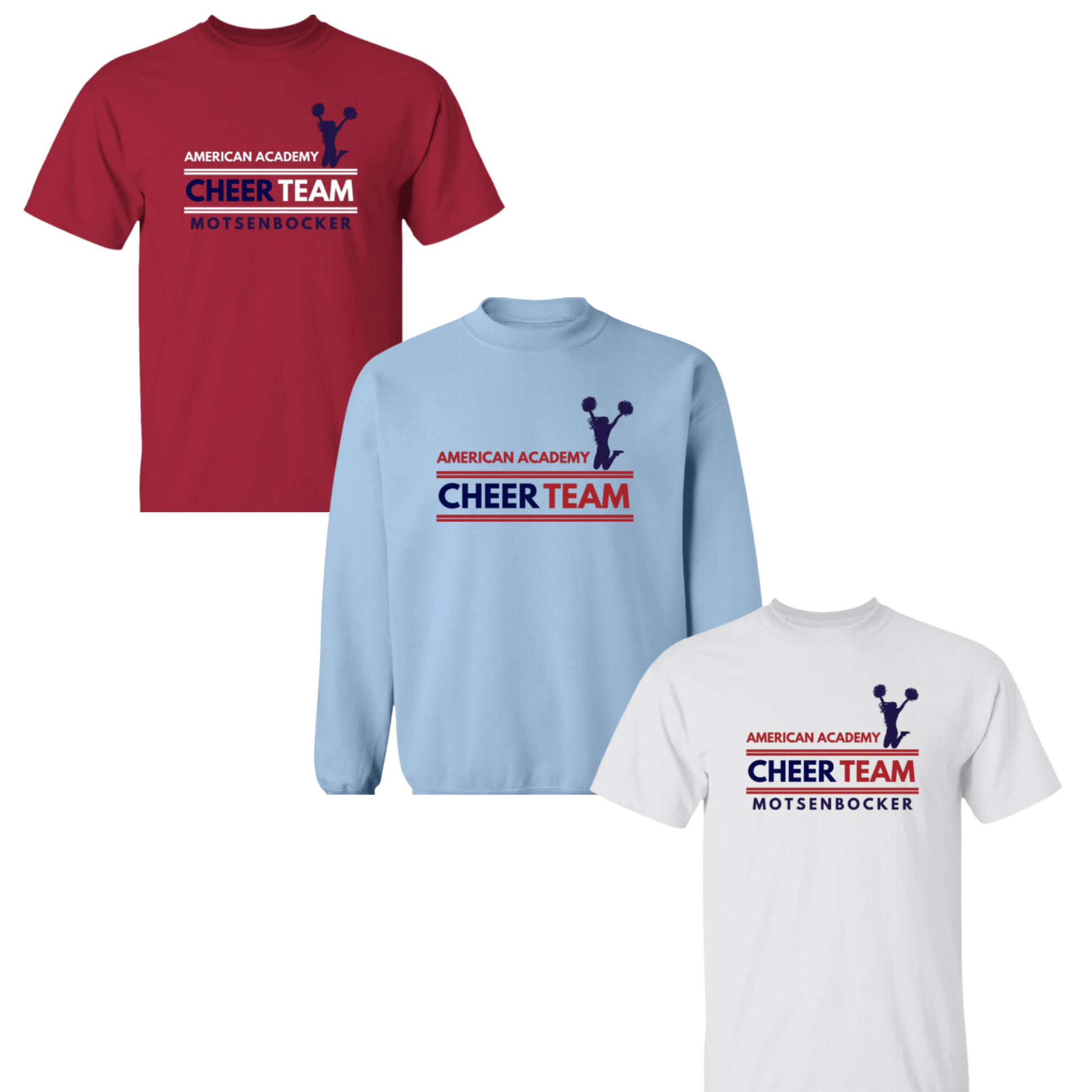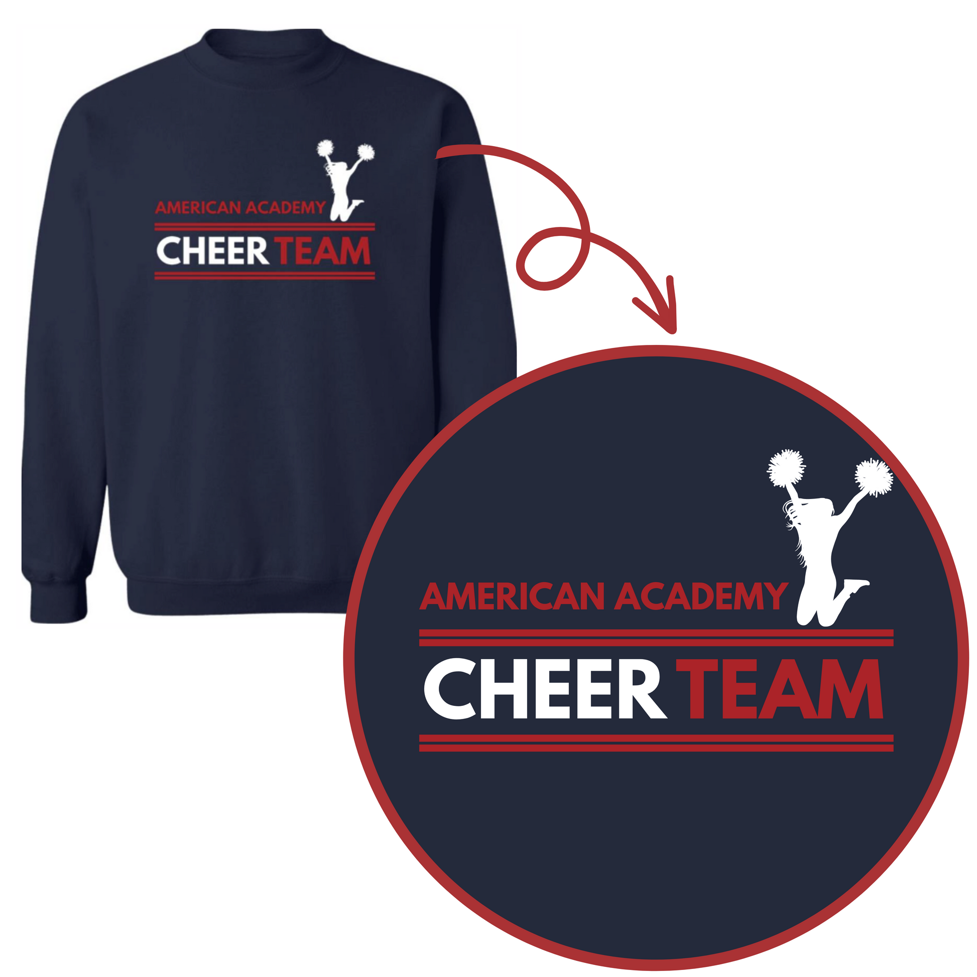 Show your spirit for the American Academy Cheer Team with this stylish and comfortable Spirit Day Approved T-Shirt. The design features the school name in bold, letters and a dynamic cheerleader graphic. Two shirts to choose from: The Utility made from 100% cotton or The Comfy a softer combed ringspun cotton. Looking for something warmer? Try the crew sweatshirt! This collection is perfect for school spirit day, practice, or any day you want to show your support.