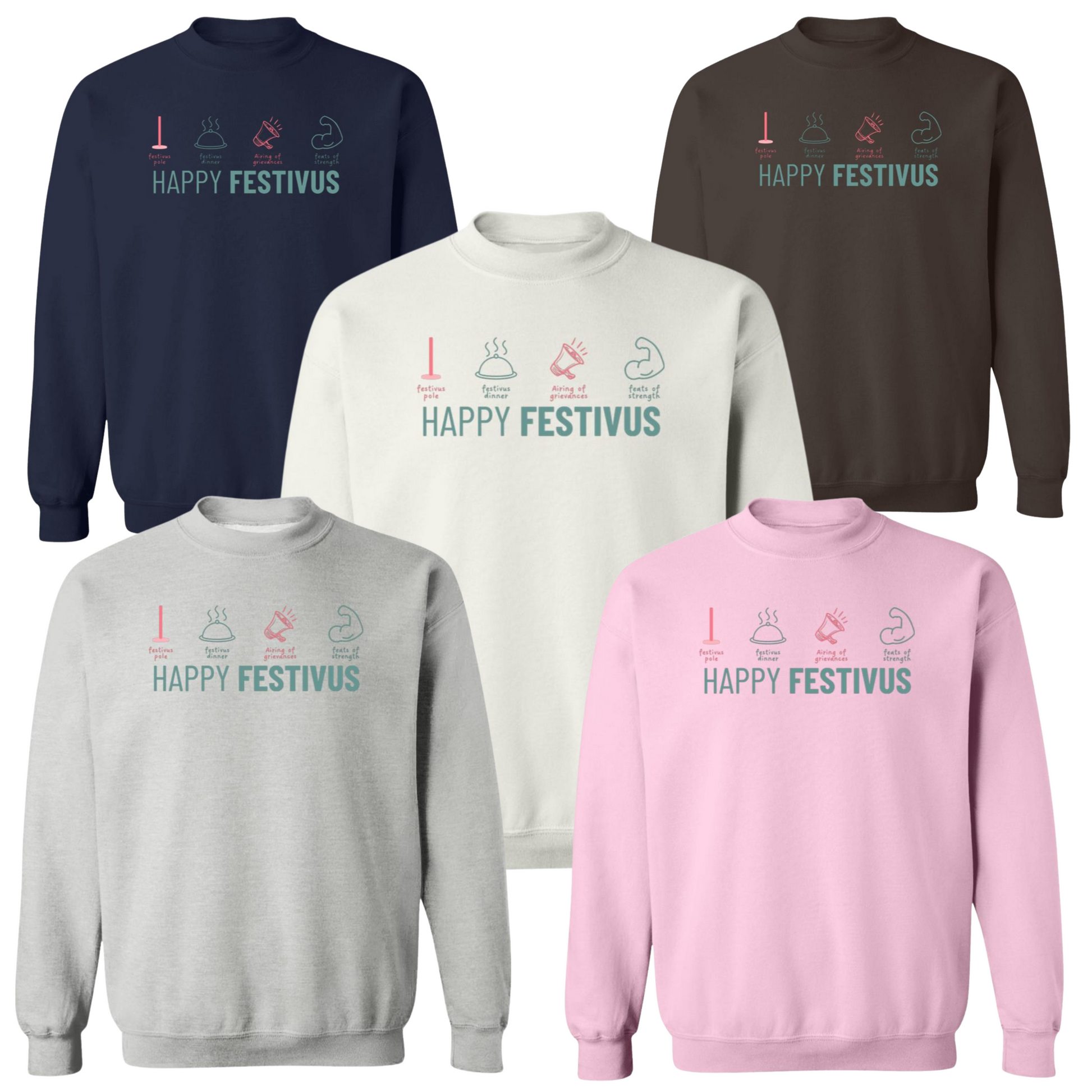 Celebrate the holiday that "features the airing of grievances and the displaying of feats of strength" with our Festivus Elements Crewneck Sweatshirt. Order now and make a statement that's as unforgettable as the holiday itself!