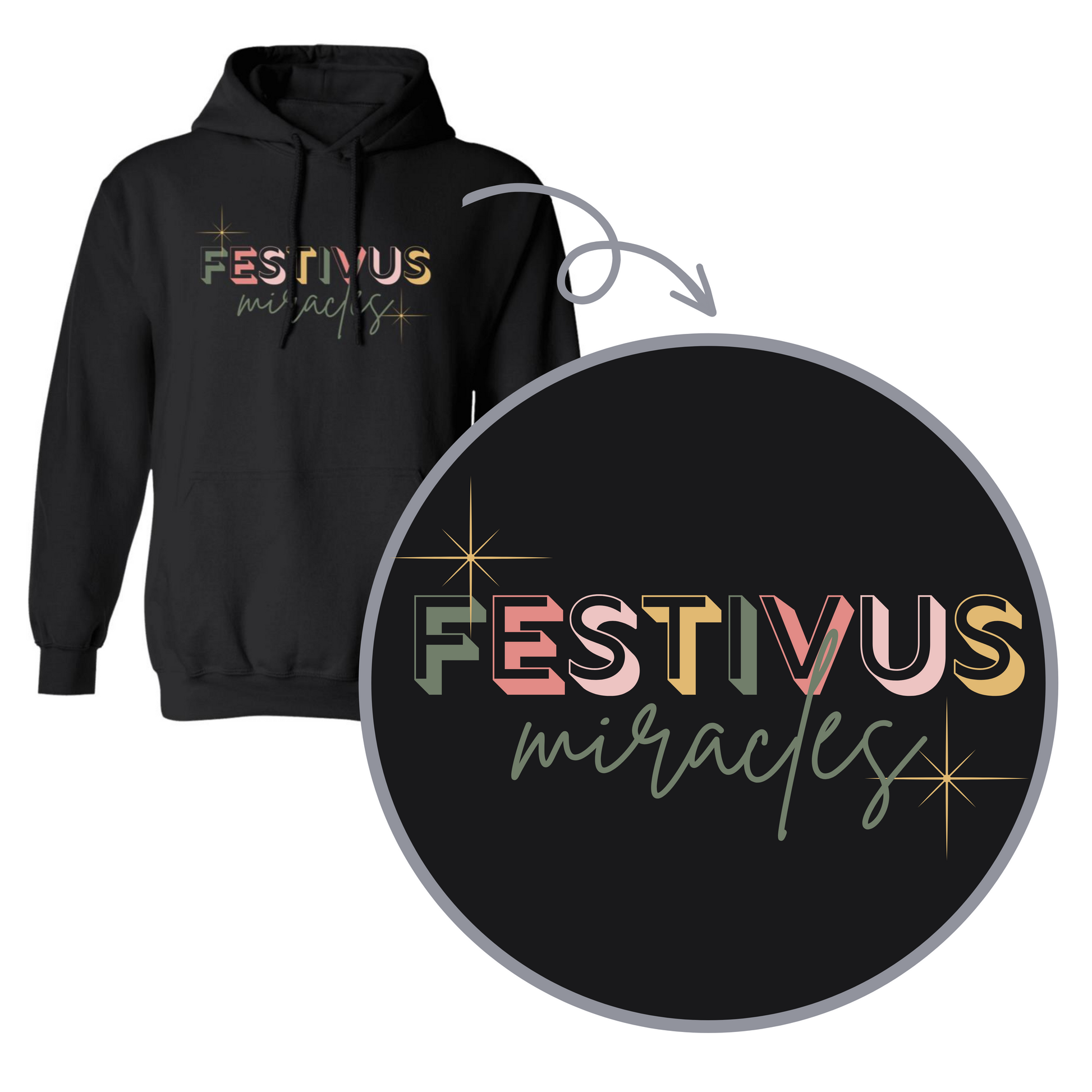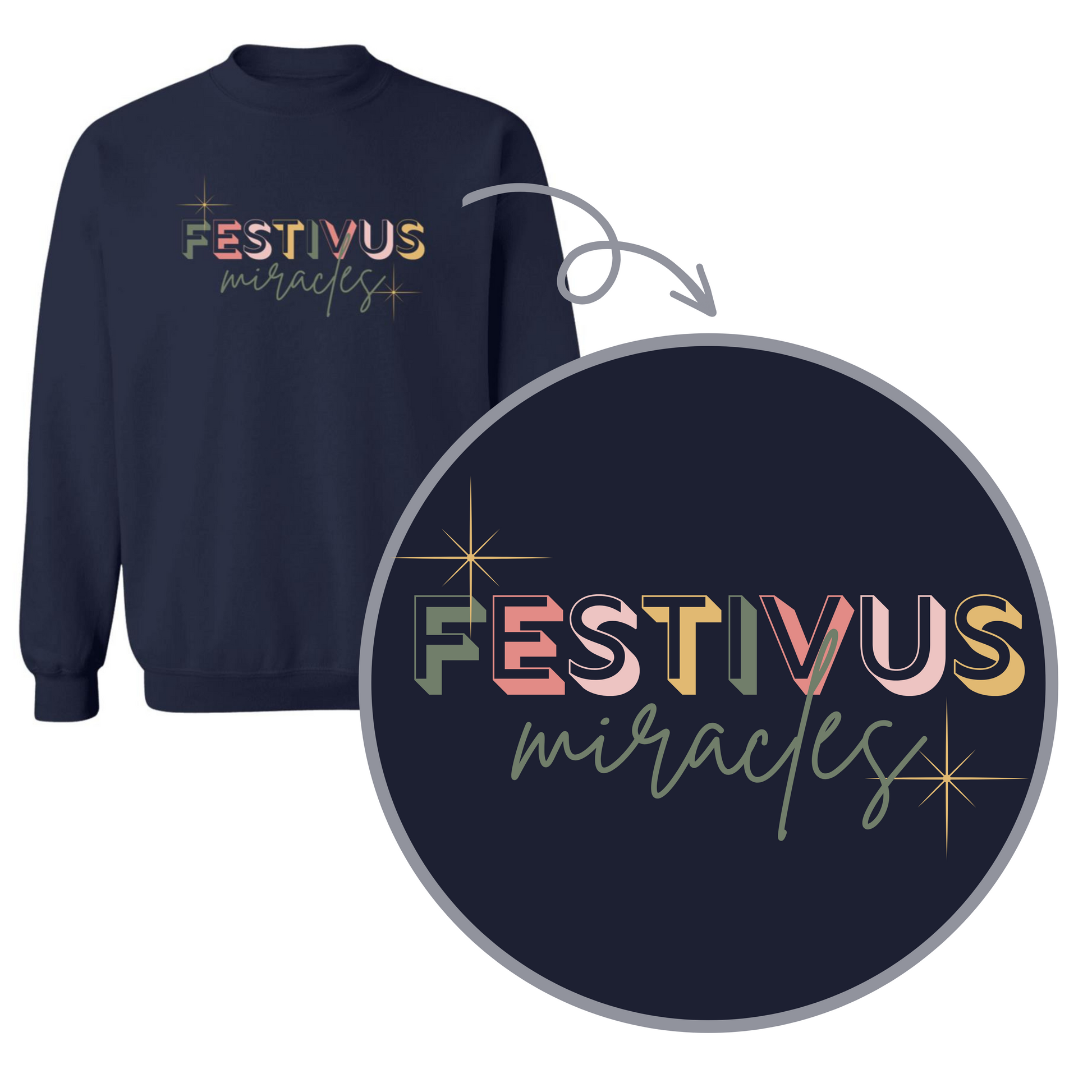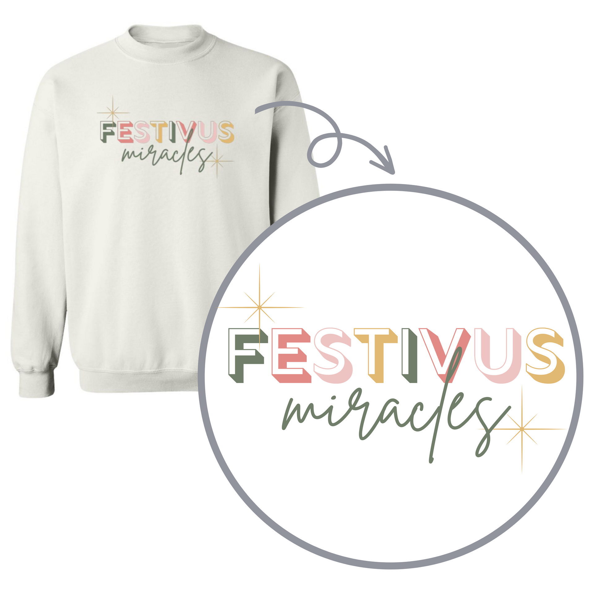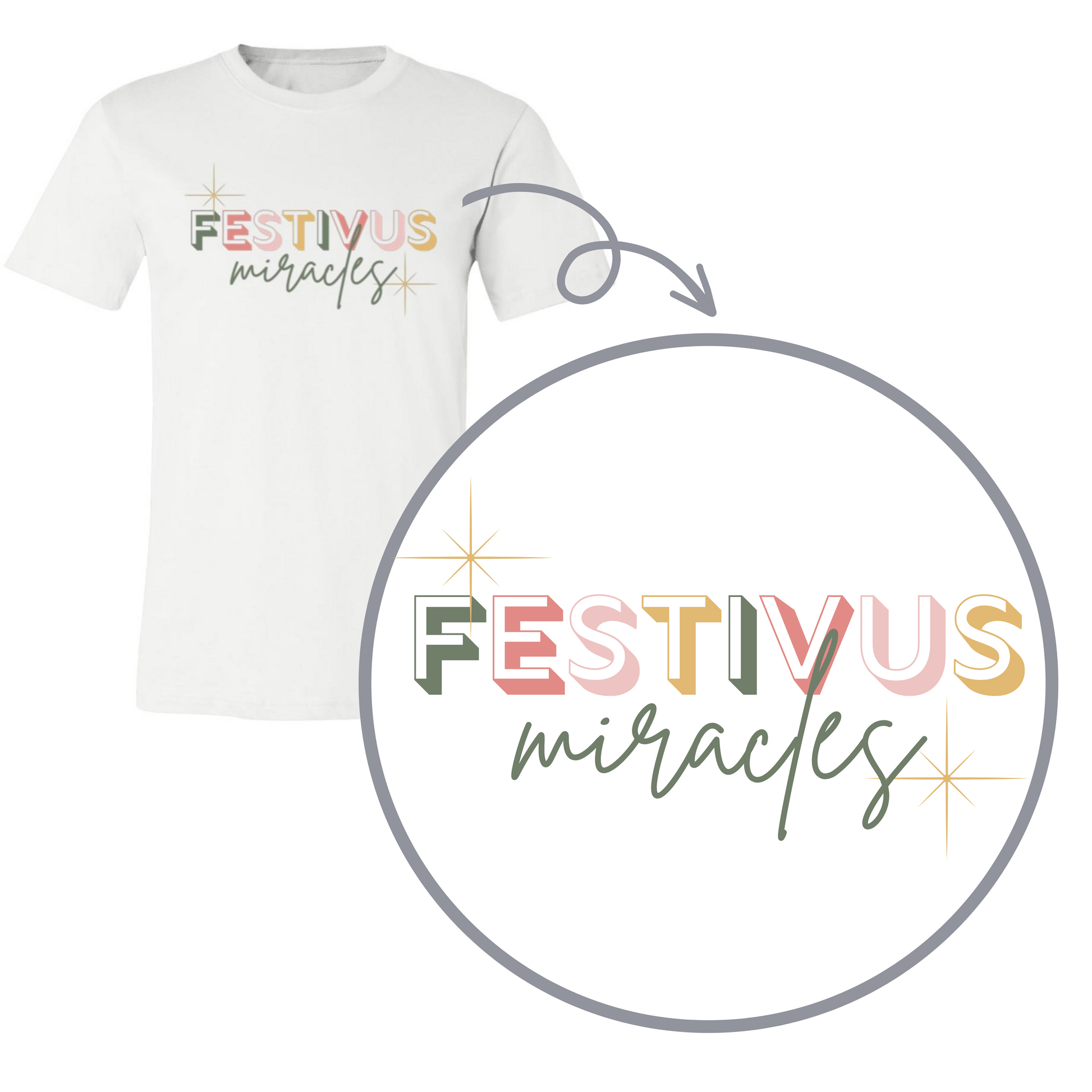 The soft hues of pink, green, and butter yellow create a harmonious palette that captures the magic of Festivus in a uniquely feminine way. The "Festivus Miracles" slogan is delicately displayed, allowing you to celebrate the holiday season with style and grace.