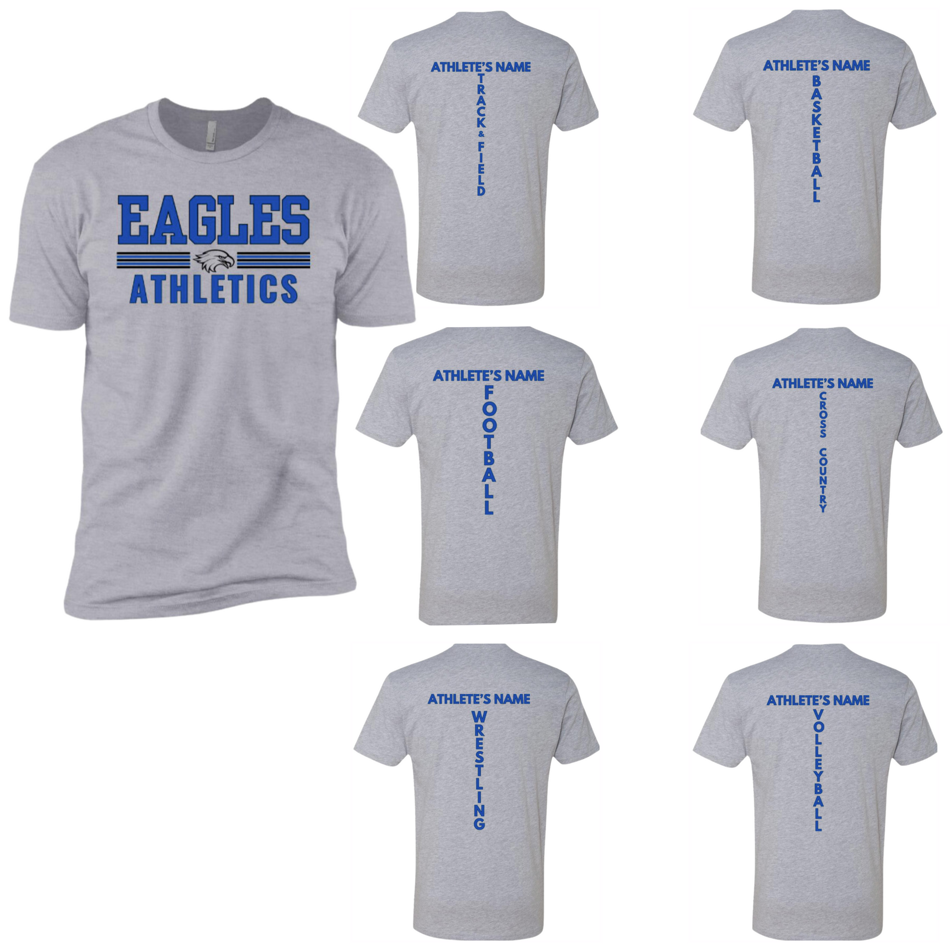 Eagle Pride! Here is your shirt to show that you are a Sierra Eagle Athlete! On the front is a simple Eagles Athletics design. But on the back is where you will stand out! Pick your sport and supply your name and in no time you will be standing out from the crowd! all Whether you're a basketball, wrestler, or other athlete, this versatile shirt showcases your school pride.